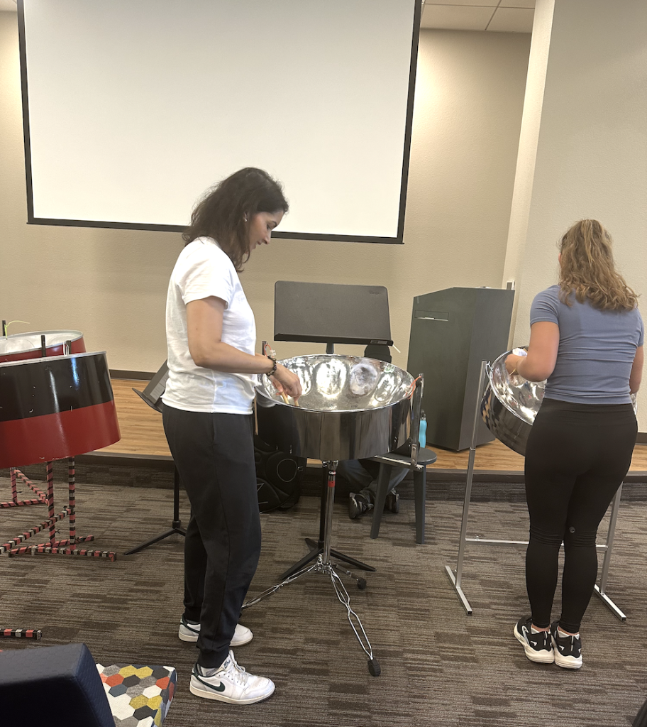 Recently, I received an email on my child’s school message board about summer steel drum, or Calypso, lessons for adults at Stanford. As my children have gone through their musical education journeys, they have inspired me to reconnect with my musical interests. I played a few instruments as a child and resumed piano lessons a few years ago. But as my youngest found more of a passion in drumming, I felt a growing interest in it, too. Though, I didn’t know how or whether to pursue it.